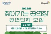 코리아타임뉴스 이아름 기자 | (재)화성시문화관광재단은 1월 12일부터 1월 23일까지 ‘2026 찾아가는공연장’ 참여 공연단체를 모집한다고 밝혔다. ‘찾아가는 공연장’은 화성시의 곳곳에서 다양한 장르의 공연을 제공함으로써 시민들의 일상적인 문화예술 관람을 돕기 위한 사업으로, 2009년부터 시작된 화성시문화관광재단의 대표 문화사업 중 하나다. 지난 2025년도에는 공개 모집을 통해 40개의 공연단체를 선정했으며, 문화취약계층에 방문공연, 공원 광장 거리공연 등을 통해 다양한 장르의 공연으로 화성시민과 함께했다. ‘2026 찾아가는 공연장’은 약 140회차의 공연을 목표로 운영된다. 이번 공연단체 모집은 3년 이상의 공연활동 경력이 있는 공연단체라면 지역, 장르에 상관없이 신청가능하다. 접수는 1월 12일부터 23일까지 온라인으로만 가능하며, 1차 서류‧영상 심사, 2월 9일~10일 2차 실연‧면담 심사를 거쳐 2월 12일에 최종 선정단체 총 35팀을 발표할 예정이다. 화성시문화관광재단 안필연 대표이사는 “지역과 장르의 제한을 두지 않는 만큼, 화성시 곳곳에서 재능을 뽐내줄 다양한 예술 공연단체들의 많은 관심과
