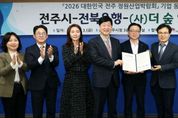 코리아타임뉴스 김태훈 기자 | 전주덕진공원에 ㈜전북은행과 함께 만들고, 모든 시민이 함께 누리는 정원이 조성된다. 전주시와 ㈜전북은행, (사)더숲(대표 정명운)은 3일 시청 3층 소회의실에서 윤동욱 전주시장 권한대행 부시장과 김은호 전북은행 부행장, 정명운 (사)더숲 대표 등이 참석한 가운데 ‘2026 대한민국 전주정원산업박람회’ 기업동행정원 조성을 위한 업무협약을 체결했다. 이날 협약에 따라 세 기관은 올해 전주에서 열리는 ‘2026년 대한민국 전주정원산업박람회’와 연계해 덕진공원에 기업동행정원을 조성, 정원도시 전주의 위상을 높이고 지역 정원문화 확산에 힘을 모으기로 했다. 덕진공원에 대한민국 전주정원산업박람회와 연계해 기업동행정원을 조성키로 한 것은 전북현대모터스FC와 ㈜포스코이앤씨, 대자인병원에 이어 전북은행이 네 번째이다. 전북을 대표하는 금융기관으로써 그동안 소상공인·중소기업 지원과 사회공헌 활동을 통해 지역경제 버팀목 역할을 해온 전북은행은 이번 기업동행정원 조성을 통해 지역상생철학을 시민 체감형 공공공간으로 구현한다는 구상이다. 시는 이번 협약에 따라 덕진공원 내 기업동