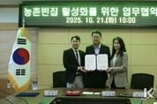 코리아타임뉴스 충남취재본부 | 홍성군농업기술센터는 지난 21일 한국폴리텍대학 충남캠퍼스, 귀촌건축지원센터와 함께 농촌 빈집 활성화를 위한 업무협약을 체결했다. 이번 협약은 농촌지역의 인구감소와 고령화로 인해 증가하는 빈집을 체계적으로 관리하고, 귀농·귀촌인의 안정적인 정착을 지원하기 위해 민·관·학이 협력기반을 마련하고자 추진됐다. 세 기관은 협약을 통해 농촌 빈집의 체계적인 관리와 활용을 위한 다각적인 협력체계를 구축하기로 했으며, 각 기관별 역할은 ▲(홍성군농업기술센터) 귀농·귀촌 정책 및 교육 지원, 홍보와 행정관리 전반을 담당 ▲(한국폴리텍대학 충남캠퍼스) 스마트농업, ICT 등 신기술 관련 실용교육 운영 ▲(귀촌건축지원센터) 빈집은행 플랫폼 운영과 공인중개사를 통한 빈집 매매·임대 연계 역할을 수행한다. 이를 통해 세 기관은 방치된 주택 정비로 인한 안전사고 예방과 생활환경 개선, 귀농귀촌 정착지원 및 인구 유입 확대, 지역경제 활성화 등의 효과를 기대하고 있다. 이승복 홍성군농업기술센터소장은 “이번 협약을 통해 귀농귀촌 정책과 교육을 연계해 실제 빈집 활용으로 이어질 수 있는 현장 중심의
