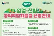 코리아타임뉴스 전남취재본부 | 순천시는 2026년 임업‧산림 공익직접지불금 신청접수를 오는 3월 4일부터 4월 30일까지 실시한다고 밝혔다. 임업직불제는 산림의 공익적 기능을 증진하고 임업인의 소득안정을 위해 지급대상 산지에서 대추, 호두, 밤 등 임산물을 생산하거나, 나무를 심거나 가꾸는 육림업에 종사하는 임업인에게 직불금을 지급하는 제도이다. 지급 대상은 임산물생산업의 경우 2019년 4월 1일부터 2022년 9월 30일까지 임야 대상 농업경영체로 등록된 산지에서 직전 1년 이상(연간 60일 이상) 임산물 생산업에 종사하고, 연간 임산물 판매금액이 120만 원 이상 등 일정 자격을 갖춘 임업인이어야 한다. 육림업의 경우 산림경영계획 인가를 받고 동일 기간 내 임야 대상 농업경영체로 등록된 산지에서 직전 1년 이상(연간 60일 이상) 육림업에 종사하고, 직전 10년간 육림 실적이 3ha 이상 등 일정 자격을 갖춘 임업인이어야 한다. 간편신청(문자·카카오톡)은 3월 4일부터 3월 31일까지고, 온라인 신청은 3월 4일부터 3월 31일까지이며 ‘임업-in 통합포털'에서 신청할 수 있다.