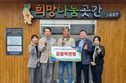 코리아타임뉴스 충남취재본부 | 금산군에 소재한 ㈜명지건설(대표 최명식)은 지난 9일 금산군 금성면지역사회보장협의체에 100만 원을 기탁했다. 이날 지정기탁된 성금은 내년 금성면 취약계층을 위한 반찬나눔사업 등으로 사용될 예정이다. 강희천 금성면장은 “최명식 대표님께 진심으로 감사의 마음을 전한다”며 “기탁하신 성금은 꼭 필요한 분들을 위해 사용되도록 노력하겠다“고 말했다.