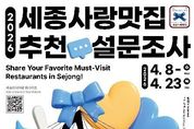 코리아타임뉴스 세종취재분부 | 세종시문화관광재단은 지역 대표 맛집 발굴을 위해 4월 8일부터 23일까지 ‘2026 세종사랑맛집’ 선정을 위한 시민 참여형 설문조사를 실시한다고 밝혔다. ‘세종사랑맛집’은 시민의 직접 추천과 전문가 심사를 거쳐 선정되는 세종시 대표 음식점으로, 지난 2025년에는 총 44개소가 선정되어 지역 미식 관광의 핵심 자원으로 활용되고 있다. 특히 올해는 2027 충청권 하계 세계대학경기대회(U대회)를 앞두고 있는 만큼, 일반 음식점을 중심으로 하되 다국어 메뉴판과 외국어 소통 가능 인력 등 ‘외국인 친화 서비스’ 역량을 갖춘 업소도 함께 발굴할 계획이다. 추천 대상은 세종시 소재 일반음식점 중 영업신고일로부터 1년이 경과한 업소이며, 프랜차이즈 가맹점은 제외된다(단, 본점은 가능). 또한 최근 1년 이내 위생 관련 행정처분이나 원산지 표시 위반 등의 이력이 있는 업소는 최종 선정에서 제외하여 공신력을 확보할 예정이다. 한경아 관광사업실장은 “시민들이 직접 추천한 ‘세종사랑맛집’은 세종시를 찾는 관광객들이 신뢰할 수 있는 지역 대표 관광 자원이 될 것”이라며, “국제 행사를 대
