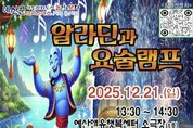 코리아타임뉴스 김택호 기자 | 예산군은 아동친화도시 조성의 일환으로 가족참여형 뮤지컬 ‘알라딘과 요술램프’를 12월 21일 예산앤유행복센터에서 공연한다고 밝혔다. 이번 공연은 가족이 함께 즐기는 문화 체험을 통해 놀이·문화 영역 확대와 아동 발달권 증진을 도모하기 위해 마련됐다. 뮤지컬 ‘알라딘과 요술램프’는 원작을 아이들의 눈높이에 맞춰 재구성하고 무대체험 등 직접 참여 요소를 강화해 가족 모두가 몰입할 수 있도록 구성됐다. 관람을 희망하는 관내 아동 동반 가족은 12월 1일부터 12월 12일까지 사전 접수할 수 있으며, 선착순 모집으로 인원 충족 시 조기 마감된다. 신청은 공연 포스터의 정보무늬(QR코드)를 스캔해 신청서 작성 후 제출하는 방식으로 진행된다. 군 관계자는 “참여형 뮤지컬을 통해 관객 모두가 무대의 주인공이 돼 상상력과 감성을 키우는 특별한 시간이 되길 바란다”며 “관내 아동이 폭넓은 문화 경험을 누릴 수 있도록 다양한 프로그램을 마련해 아동친화도시 조성을 위해 노력하겠다”고 말했다. 한편 군은 아동의 권리가 존중받고 모든 아동이 행복하게 성장할 수 있는