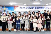 코리아타임뉴스 오영주 기자 | 진주시는 지난 27일 시청 3층 문화강좌실에서 ‘2025 진주시민 독서감상문 공모 시상식’을 개최했다. ‘진주시민 독서감상문 공모’는 독서 문화운동 전개로 시민의 독서 의욕을 고취시켜 건전한 독서습관 형성과 독서문화 활성화를 위해 매년 실시되고 있다. 올해 공모는 진주시민을 대상으로 초등부, 중·고등부, 일반부 등으로 나눠 지난 7월 1일부터 9월 26일까지 진행됐다. 올해 선정된 도서는 《구구옥-이별을 도와드립니다》, 《별하약방》, 《스파클》, 《행복의 기원》 등이다. 이번 공모전에는 총 525명의 시민이 참여했으며, 접수된 공모작 가운데 예심과 본심을 거쳐 28명의 수상자가 선정됐다. 최우수상은 ▲초등부 서어진(도동초 5) 학생 ▲중·고등부 정초우(대곡중 1) 학생 ▲일반부 강건중(충무공동) 씨가 수상의 영광을 안았다. 이 외에도 우수상 9명과 장려상 16명, 우수 지도교사상 2명 등 모두 30명이 수상의 영예를 안았다. 수상작은 진주시립도서관 ‘석류알’ 문집에 수록되며, 시립도서관 7개소를 포함한 다양한 기관에 배부돼 활용될 예정이다. 조규일 진주시장