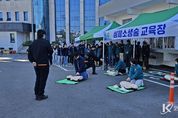 코리아타임뉴스 오영주 기자 | 거창군은 지난 28일 공공청사 내 화재 발생 시 초동 대응 능력 향상과 인명피해 최소화를 위해 김현미 부군수 주재로 거창소방서와 합동소방훈련을 실시했다. 이번 소방훈련은'공공기관의 소방안전관리에 관한 규정'에 따라 매년 진행하는 훈련이며, 청사 내 화재가 실제로 발생한 상황을 가정하여 진행됐다. 특히, 긴급상황에 신속하고 체계적으로 대처할 수 있는 초동 대응 능력을 향상하고 소방서와의 협업 체계를 구축하는 데 중점을 뒀다. 훈련에는 공무원과 거창소방서 등 총 300여 명이 참여했으며, △화재 신고와 상황전파 △소화기 및 옥내소화전을 활용한 자위소방대의 초기 화재진압 △신속한 대피 △응급조치 등 상황별 대처 능력 배양에 중점을 두고 이뤄졌다. 또한, 화재 대피 및 진화 훈련을 마친 후에는 직원들을 대상으로 소화기 사용법과 심폐소생술(CPR) 교육 실습 체험을 실시했다. 이는 화재 발생 시 당황하지 않고 능동적으로 대처할 수 있도록 준비해 직원들의 호응과 관심도를 높이는 계기가 됐다. 김현미 부군수는 “이번 합동소방훈련을 통해 재난 대응 능력 향상과 화재 예방에 대한 경각