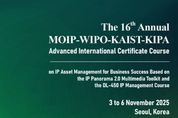 코리아타임뉴스 해외팀 | 지식재산처는 세계지식재산기구(WIPO) 및 한국발명진흥회(KIPA)와 공동으로 11월 3일~ 6일까지 한국지식재산센터(서울 강남구)에서 '국제 지식재산 전문가 인증과정(AICC)'을 개최한다. 올해는 지식재산처·WIPO·KIPA가 공동 개발한 지식재산(IP) 비즈니스 교육 e러닝 콘텐츠인 IP 파노라마 2.0을 활용해 온라인 과정을 수료한 119개국 1,364명 중 23개국 35명의 우수 학습자를 최종 선발해 서울에서 오프라인으로 심화 교육을 진행한다. 이번 교육을 통하여 세계 각국의 지식재산 전문가들이 지식재산 경영 및 활용 전략을 수립하는데 도움을 받을 수 있을 것으로 기대된다. 이번 오프라인 교육 과정은 국제 비즈니스 경영 측면에서 지식재산의 효과적인 활용과 관련된 ▲ 지식재산(IP) 가치 평가 및 금융 ▲ 인공지능(AI) 등 최신 IP 동향 ▲ 특허등급 평가 및 활용 사례 ▲ IP 면허 전략 ▲ IP 면허 협상을 위한 실습 등으로 구성됐다. 특히, 창업초기기업ㆍ개척기업을 위한 IP 경영전략 수립 방법, 분쟁 대응전략 등의 내용도 포함되어 있어 경영 실무역량 배양에 도움이 될 것으로 기대된다