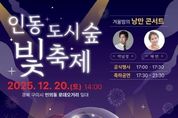 코리아타임뉴스 노승선 기자 | 구미시는 오는 12월 20일 인동로데오거리 일원에서 청춘의 에너지와 음악이 어우러지는 '2025년 인동도시숲빛축제'를 개최한다. 이번 축제는 젊은 도시로서 도심에 활력을 더하고 겨울철 야외 문화 향유 기회를 넓히기 위해 마련됐다. 행사는 오후 2시 30분부터 밤 9시 30분까지 인동로데오거리 특설무대에서 진행되며, 12월 18일부터 30일까지는 크리스마스 시즌을 맞아 경관조명을 설치해 시민과 방문객을 위한 포토스폿도 운영한다. 오후 2시 30분부터 5시까지는 레크리에이션과 지역 버스킹 밴드 공연, 뮤지컬 갈라쇼 등이 이어져 어린이부터 어른까지 온 가족이 함께 즐길 수 있는 프로그램을 선보인다. 오후 5시부터는 공식행사를 시작으로 레트로 댄스 가수 박남정과 채연의 무대, 서커스 공연, 디제잉까지 다채로운 라이브 공연이 펼쳐져 겨울밤 도심을 열정으로 채울 예정이다. 김장호 구미시장은 “인동도시숲빛축제는 젊은 도시 구미의 활력을 시민과 함께 나누는 자리”라며 “많은 시민과 관광객이 인동로데오거리를 찾아 음악과 빛이 어우러진 겨울 축제를 즐기길 바란다”고 말했다.