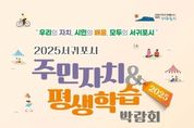 코리아타임뉴스 노승선 기자 | 서귀포시는 10월 31일 ~ 11월 1일, 2일간 제주월드컵경기장 광장에서, ‘2025 서귀포시 주민자치 & 평생학습박람회’를 개최한다. 이번 행사는 ‘우리의 자치 시민의 배움, 모두의 서귀포시’를 테마로, 17개 읍면동 주민자치센터와 평생교육기관의 1년간 우수사례를 공유하고 화합의 장을 위해 마련됐다. 특히 올해는 서귀포시가 ‘장애인 평생학습도시’로 지정된 의미를 살려, 장애인 유관 기관·단체가 함께 참여하여 포용적 학습도시의 비전과 성과를 공유할 예정이다. 첫째 날에는 오후 2시 캉구댄스, 컵타, 라인댄스 등 그동안 주민자치센터 문화 강좌 등을 통하여 갈고 닦은 문화프로그램 동아리들의 실력을 뽐내는 경연대회를 시작으로 개막식이 오후 6시에 개최된다. 그리고 시민 누구나 참여할 수 있는 다양한 즐길거리가 준비되어 있다. 개막식 초청 가수로는 조은별, 범찬 등이 축하공연을 하게 된다. 둘째 날은 각종 이벤트를 시작으로, 주민자치활동 상연, 주민자치 토크콘서트, 평생학습 동아리 발표회와 장애인 오케스트라 특별공연, 주민자치위원대상 주민행복 쏭 콘서트가 이어지며, 각종 경