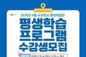 코리아타임뉴스 노승선 기자 | 서귀포시는 시민의 다양한 배움의 기회를 제공하기 위해 2026년 4월 개강 서귀포시 평생학습관 프로그램 수강생을 모집한다고 밝혔다. 이번 교육과정은 직업능력, 인문교양, 문화예술 등 3개 분야, 15개 강좌, 총 235명의 수강생을 모집하여 운영할 예정이다. 수강신청은 16일 오전 9시부터 25일 오후 6시까지 서귀포시 평생학습관 홈페이지에서 온라인을 통한 선착순 접수로 진행되며, 정원 미달 강좌는 26일부터 27일까지 이틀간 추가접수를 받는다. 모집 대상은 만 19세 이상 서귀포시민이며, 서귀포시민을 우선으로 선발하고 타지역 거주자는 후순위로 선정된다. 특히, 지역청년의 성장을 지원하기 위해 직업능력 분야 2개 과정은 청년층(만19세~39세)를 우선 선발(정원의 30%)하여 운영한다. 서귀포시 관계자는 “평생학습관에서는 자격증 취득과정 운영뿐만 아니라, 직장인과 시민들의 학습 접근성을 높이기 위해 주말 및 야간 프로그램을 확대하여 시민들의 평생학습 참여 기회를 넓히고자 노력하고 있다”라고 말했다.