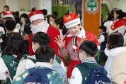 코리아타임뉴스 사회팀 | 대구대봉초등학교는 12월 24일 아침 8시, 성탄절과 겨울방학을 앞두고 강은희 교육감이 참석해‘CARES UP 사랑 나눔 DAY’를 운영했다. 이번 행사는 한 해 동안 열심히 공부한 학생들을 격려하고, 다가오는 겨울방학을 즐겁고 안전하게 맞이하기를 바라는 마음을 담아 마련됐다. 이날 강은희 교육감은 직접 산타클로스 복장을 하고 등교하는 학생 한 명 한 명에게 따뜻한 인사를 건냈다. ‘팝콘처럼 톡톡 터지는 기쁨, 어묵처럼 마음을 데우는 사랑’을 주제로 추운 날씨에 등교하는 학생들을 위해 따뜻한 어묵을 제공하며 온기를 나누고, 달콤한 팝콘을 나누며 성탄절의 설렘을 선사하며 학생들을 응원했다. 대봉초는 행사에 앞서 은행나무뜰과 교내 곳곳을 크리스마스 장식과 포토존으로 꾸미고, 사전 안전지도와 질서 안내를 통해 모든 학생이 안전하고 즐겁게 참여할 수 있도록 준비했다. 행사에 참여한 한 학생은 “아침에 학교에 왔는데 교육감님과 선생님들이 직접 간식을 나눠주셔서 깜짝 놀랐다”며 “친구들과 함께해서 더 즐거웠고, 크리스마스를 앞두고 정말 따뜻한 추억이 생겼다”고 말했다.