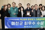 코리아타임뉴스 경북취재본부 | 예천군은 올해 경상북도가 주관한 ‘축산업무 종합평가’와 ‘가축방역평가’에서 모두 최우수상을 수상하며 축산분야 선도 지자체로서의 안정적인 축산행정과 방역정책 추진 성과를 대내·외에 인정받았다. 축산업무 종합평가는 도내 시·군을 대상으로 국·도비 예산 확보 및 집행실적, 신규사업 발굴, 축산시책 추진성과 등 6개 분야 11개 항목에 대해 종합적으로 실시됐다. 예천군은 축산 관련 예산의 적극적인 확보와 효율적인 집행, 지역 여건에 맞춘 신규사업 발굴과 특색 있는 축산시책 추진으로 높은 평가를 받으며 5년 연속 수상이라는 의미 있는 성과를 거뒀다. 가축방역평가는 방역시책 및 예산, 구제역·고병원성 AI·ASF(아프리카돼지열병) 등 주요 가축질병 대응을 중심으로 2개 분야 16개 항목에 대해 이뤄졌다. 예천군은 가축전염병 유입 차단을 위한 선제적 방역대책 수립, 예산의 적정 배분 및 효율적 운영, 현장 중심의 지도·점검 강화로 높은 점수를 받았다. 특히, 아프리카돼지열병 등 중점질병에 대응하기 위해 방역시설 확충, 소독시설 상시 운영, 농장단위 방역수칙 지도, 교육 및 홍보 강화 등을 체계