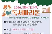 코리아타임뉴스 사회팀 | 충청북도교육청 직속기관 중원교육문화원은 언제나 책봄 정책을 활성화 하기 위해 2월 3일부터 3월 13일까지 북부권 초‧중‧고등학생과 학부모를 대상으로 '2026년 같이(가치)책 독서마라톤' 참여자를 모집한다. 중원교육문화원은 3월 말 발대식을 시작으로 오는 12월까지 독서마라톤을 본격 운영할 계획이다. '2026년 같이(가치)책 독서마라톤'은 학생들이 매월 읽기와 기록, 성찰 활동을 반복하며 꾸준한 독서 습관을 기를 수 있도록 운영되는 프로그램이다. 참가자들은 다채움 플랫폼 ‘채움책방’을 활용해 시간과 장소에 관계없이 독서 활동에 참여할 수 있으며, 누적 독서량에 따라 12월에 구간별 완주증서와 기념품을 받게 된다. 참여 기준은 매월 1편 이상, 총 8회의 독후감상문을 업로드하는 것으로, 학년별 독후감상문 서식과 글자 수 기준에 따라 독서 권수가 인정된다. 독서 완주구간은 ▲소크라테스(8~16권) ▲플라톤(17~34권) ▲아리스토텔레스(35권 이상)으로 구분된다. 참여를 희망하는 학생은 중원교육문화원 누리집에서 신청할 수 있으며, 기타 문의 사항은