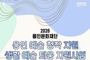 코리아타임뉴스 사회팀 | 용인문화재단은 지역 생활예술인의 창작 활동을 지원하고 예술 참여 기반을 확대하기 위해 ‘2026년 제2차 공모 지원사업 – 생활예술 틔움 지원사업’을 추진한다고 밝혔다. 이번 지원사업은 그동안 공공지원사업 참여 기회가 상대적으로 제한됐던 아마추어 예술인 및 신규 생활예술단체의 진입 장벽을 낮추고, 초기 단계 예술 활동을 활성화하기 위해 기획됐다. 지원 대상은 공고일 기준 용인시에 거주하거나 소재한 생활예술인 및 생활예술단체이며, 공연, 전시, 워크숍 등 생활예술 전반에 걸친 다양한 활동을 지원한다. 특히 순수 아마추어 예술인의 활동 기회를 보장하기 위해 전문 예술인(단체) 및 기존 공모지원사업 선정 이력이 있는 개인·단체는 이번 사업에서 지원이 제한된다. 또한 이번 공모에서는 기존 공고일 기준 기설립 단체만 신청할 수 있었던 요건을 완화해, 신규로 구성된 생활예술단체도 지원할 수 있도록 개선했다. 지원 규모는 개인 최대 150만 원, 단체 최대 300만 원으로, 창작 및 발표 활동에 실질적인 도움이 될 수 있도록 운영할 예정이다. 이를 통해 재단은 처음 예술 활동을 시작하거나 지원사업