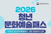 코리아타임뉴스 윤광희 기자 | ■ 2026 청년문화예술패스, 2월 25일부터 신청 - 19~20세 청년 최대 20만 원 청년 문화예술패스는 19~20세 청년*이 협력 예매처에서 공연, 전시, 영화 예매에 즉시 사용할 수 있는 이용권입니다. * 2026년 대상은 2006~2007년생 서울, 경기, 인천 등 수도권 지역 거주 청년→15만 원 비수도권 지역 거주 청년→20만 원 기존에는 사전에 한 개의 예매처만 선택해 이용할 수 있었는데요. 올해부터는 7개 예매처에서 공연과 전시, 영화 등 보고 싶은 작품의 관람권을 예매할 수 있습니다. NOL ticket, 티켓링크, yes24, Melon티켓, MEGABOX, 롯데시네마, CGV ■ 지원대상 대한민국 19~20세 청년 총 28만 명 생애 최초 1회 지원 ■ 신청기간 2026년 2월 25일~6월 30일 신청순 발급(지역별 예산 소진 시 해당 지역 발급 마감) ■ 신청방법 청년문화예술패스 누리집 회원가입 후 온라인 신청 ■ 문의 청년문화예술패스 고객지원센터 ☎1577-1968