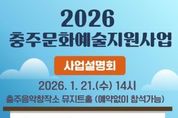코리아타임뉴스 박찬식 기자 | (재)충주문화관광재단은 충주시 예술인 및 예술단체의 창작활동 기반을 마련하여 문화예술 생태계를 조성하고자 1월 19일부터‘2026 충주문화예술지원사업’공모를 진행하고 있다고 밝혔다. 공고 및 접수 기간은 2월 20일 오후 5시까지이며, 재단 홈페이지를 통해 공모요강과 신청서를 확인한 후 이메일로 접수하면 된다. 최종 선정은 전문가 심의를 거쳐 3월 중에 발표될 예정이다. 이번 공모는 ▲문학 ▲시각 ▲공연/다원 분야로 개인 및 단체부문으로 진행된다. 지원 대상은 공고일 이전 최소 6개월 이상 충주시에 주소지를 두고 있으며 충주시에서 문화예술사업을 운영할 역량을 갖춘 예술인 및 단체이다. 올해 공모에 대한 이해를 돕기 위해 1월 21일 오후 2시 충주음악창작소 뮤지트홀에서 사업설명회를 개최한다. 재단 관계자는 “지역 예술인의 창작 여건 개선과 역량 강화를 지원하고 시민들에게 수준 높은 문화예술 향유 기회를 제공하기 위해 지속적으로 노력하겠다.”라고 전했다. 한편 재단은 올해 출향예술인 예술활동 지원분야를 신설하여 타지에서 활동 중인 충주 출신 예술