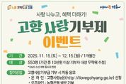 코리아타임뉴스 전남취재본부 | 장흥군은 11월 15일부터 12월 15일까지 한 달간, ‘사랑 나누고, 혜택 더하기 고향사랑기부제 이벤트’를 추진한다고 밝혔다. 연말정산을 앞두고 열리는 이번 이벤트는 기부 활성화와 고향사랑기부제 참여 분위기 확산을 위해 마련됐다. 기간 내 장흥군에 기부한 참여자를 대상으로 추첨을 통해 총 550명에게 네이버페이 포인트 쿠폰을 증정한다. 당첨자는 1만원권 50명, 5천원권 500명으로 기부자에게는 추첨 결과에 따라 개별 안내될 예정이다. 장흥군은 고향사랑기부제의 기부금이 군민 복리 증진과 지역경제 활성화에 활용되고 있음을 적극 홍보하고, 이번 이벤트를 통해 더 많은 국민이 고향사랑기부제의 취지에 공감하고 참여할 수 있도록 할 계획이다. 김성 장흥군수는 “연말정산 시 세액공제 혜택까지 받을 수 있는 고향사랑기부제에 많은 관심을 바란다”며 “작은 기부가 지역 발전의 큰 힘이 된다”고 말했다. 한편, 고향사랑기부제는 개인이 주소지 외 지방자치단체에 연간 최대 2,000만원까지 기부할 수 있는 제도로, 기부금액 중 10만원까지는 전액 세액공제, 10만