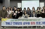 코리아타임뉴스 사회팀 | 수원시 영통구는 지난 2일, 영흥수목원에서 민원담당 공무원을 대상으로 '나를 찾아 떠나는 마음치유 여행 Cheer up! 힐링 프로그램'을 운영했다고 밝혔다. 이번 프로그램은 ‘향기로운 자기 돌봄’을 주제로, 수원시 마음돌봄상담실 김현수 전문심리상담사의 지도 아래 ▲감정 코칭(감정 이해) ▲심신이완(복식호흡·바디스캔) ▲아로마테라피(나만의 아로마오일 향수 만들기, 향기명상) 등 실습 중심 활동으로 진행됐다. 이를 통해 참여자들은 마음을 가라앉히고 집중력을 높이는 시간을 가졌다. 실습 후에는 대한민국 최고의 정원문화 명소인 영흥수목원을 산책하며 자연 속에서 힐링하고, 동료들과 소통하며 웃음을 나누는 시간을 가졌다. 교육에 참여한 한 공무원은 “감정 아로마 오일 체험으로 마음을 다스릴 수 있었고, 민원 업무로 지친 일상 속에서 나 자신을 돌볼 수 있었던 소중한 시간이었다”고 소감을 밝혔다. 장수석 영통구청장은 “공직자들이 스트레스를 해소하고 활력을 되찾는 시간이 됐길 바라며, 앞으로도 최고의 행정서비스 제공을 위해 공직자 역량 강화를 지속적으로 지원하겠다”고 말했다.