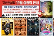 코리아타임뉴스 전남취재본부 | 강진영화관이 군민들에게 따뜻한 연말을 선물하고 새해 희망의 분위기를 함께 나누기 위해 오는 12월 6일과 12월 25일부터 2026년 1월 4일까지 ‘영화 보는 날’을 확대 운영한다. 이번 겨울방학 특집 ‘영화 보는 날’은 크리스마스, 송년 주간, 신정 연휴가 이어지는 기간 동안 11일 연속으로 진행되며, 강진군민이라면 누구나 최신 영화를 50% 할인된 가격으로 관람할 수 있다. 가족과 함께하는 크리스마스, 친구와 추억을 나누는 연말, 새해 계획을 세우는 1월 초까지 강진영화관은 군민들의 소중한 순간을 더욱 특별하게 만들어줄 따뜻한 문화 휴식 공간이 된다. 군 관계자는 “연말과 새해를 맞아 군민 여러분께 감사의 마음을 전하는 의미에서 특별한 문화 혜택을 준비했다”며 “강진영화관에서 따듯한 영화 한 편으로 올 한 해를 부드럽게 마무리하고, 새해의 희망도 함께 맞이하시길 바란다”고 말했다. 특히 군민들에게 많은 사랑을 받았던 ‘2+1 이벤트’는 오는 12월 21일을 끝으로 종료될 예정이다. 군은 “해당 이벤트 종료 전까지 많은 군민들이 혜택을 누리길 바란다”며 적극적인 이