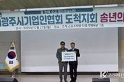 코리아타임뉴스 사회팀 | (사)광주시기업인협회 도척지회는 지난 22일 도척스포츠타운에서 송년회를 개최하고 연말연시를 맞아 도척면에 이웃돕기 성금 300만 원을 기탁했다. 이번 송년회는 한 해를 마무리하며 회원 간 결속을 다지고 상호 격려하기 위해 마련된 자리로, 협회 회원들이 십시일반 정성을 모아 마련한 성금을 함께 전달하며 의미를 더했다. 김영기 회장은 “경기가 어려울수록 서로를 위한 나눔이 더욱 중요하다고 생각한다”며 “앞으로도 지역사회와 함께하는 다양한 사회공헌 활동을 지속하며 관내 어려운 이웃을 돌보는 데 최선을 다하겠다”고 말했다. 이에 대해 고형근 면장은 “어려운 시기에도 나눔을 실천해 주신 김영기 회장과 회원 여러분께 감사드린다”며 “기탁된 성금은 도움이 필요한 이웃들이 따뜻한 겨울을 보낼 수 있도록 소중히 사용하겠다”고 밝혔다. 한편, 광주시기업인협회 도척지회는 매년 300만 원의 성금을 기탁하며 꾸준한 나눔 활동을 이어오고 있으며 도척면의 각종 지역 행사 후원에도 적극 참여하는 등 지역사회 발전에 기여하고 있다.
