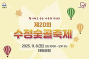 코리아타임뉴스 경기취재본부 | ‘제20회 수정숯골축제’가 오는 11월 8일 오전 10시~오후 3시 태평공원(수정구 수정로 7)에서 열린다. 성남시 수정구가 후원하고 수정숯골축제 추진위원회가 주최·주관해 열리는 이번 행사는 ‘활기차고 웃음 가득한 수정구’를 주제로 진행된다. 이날 태평공원 다목적 잔디마당에서 성남시립국악단의 식전공연을 시작으로, 시흥동의 난타 공연, 수진1동의 라인댄스 등 8개 동별 대표 공연과 제기차기, 단체투호 등의 민속놀이 경연이 펼쳐진다. 초청 가수의 축하공연도 열린다. 출연진은 ‘바람 바람 바람’ 등의 히트곡을 가진 김범룡, 쌍권총 춤으로 유명한 ‘오직 하나뿐인 그대’의 심신, 미스트롯2에 출연해 화제를 모은 주미 등이다. 올해 성남 갓텔런트 예술단으로 선발된 아인스바움(윈드 앙상블), 김수아(보컬), 윤여찬·임민영(라틴댄스) 팀도 출연해 행사 분위기를 달군다. 행사장 곳곳에는 배틀 로봇, 드론 축구 등의 4차산업 체험존, 페이스페인팅, 캐리커처, 자원순환 활동 등의 체험 부스, 먹거리 부스 등 다양한 즐길 거리가 마련된다. 이 외에도 텔