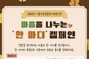 코리아타임뉴스 경기취재본부 | 시흥시장곡종합사회복지관은 연말을 맞아 지역사회에 따뜻한 마음을 전하기 위한 ‘마음을 나누는 한 마디’ 캠페인을 진행한다. 이번 캠페인은 이웃을 향한 응원의 말, 위로의 말, 사랑의 말을 담은 짧은 문장을 시민들로부터 응모 받아 서로에게 위로와 용기를 건네는 나눔의 장을 만들기 위해 마련됐다. 참여자는 직접 창작한 문장 또는 문학 작품 속 인용문 중 마음을 전하고 싶은 한 문장을 제출할 수 있다. 응모 기간은 11월 3일부터 11월 14일까지이며, 시흥시민이라면 누구나 참여할 수 있다. 참여 방법은 시흥시장곡종합사회복지관 1층 복도 현장 신청 또는 온라인으로 하면 된다. 선정된 문장은 내부 심사를 거쳐 캘리그래피 작품으로 제작되며, 오는 12월 시흥시장곡종합사회복지관 복도갤러리에서 전시된다. 전시된 작품은 시민들에게 한 해를 따뜻하게 마무리할 수 있는 작은 위로의 메시지로 전달될 전망이다. 시흥시장곡종합사회복지관 관계자는 “짧은 문장이지만, 시민 한 사람 한 사람의 따뜻한 마음이 모여 이웃에게 큰 위로가 될 것”이라며 “많은 시민이 이번 캠페인에 참여해 따뜻한 시흥을 함