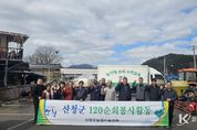 코리아타임뉴스 경남취재본부 | 산청군 120자원봉사회(회장 박승진)는 생초면 신연마을에서 2026년 순회봉사활동을 시작했다고 27일 밝혔다. 이날 봉사활동에서는 농기계 및 가전제품 수리, 전기·가스·보일러 점검 등 생활불편 사항 80건 등을 처리해 주민들에게 호평을 받았다. 1997년 창립한 120자원봉사회는 30여 년 동안 매년 1회 이상 지역의 생활불편사항을 현장에서 해결하는 봉사활동을 지속하고 있으며, 2026년에도 연말까지 11회 이상 실시할 예정이다. 지난 1월에는 120자원봉사회 정기총회를 통해 2026년 120자원봉사회 운영계획을 수립하고 임원 개편을 실시한 바 있다. 120자원봉사회 지영기 부회장은 “앞으로도 120자원봉사 활동분야 다양화 및 전문기술을 습득한 회원을 발굴·확보하여 봉사의 질적 수준을 향상시켜 더욱더 농촌마을을 발전시키고 미흡한 점을 보완하여 봉사활동이 군민의 생활속에 깊이 자리매김 될 수 있도록 최선의 노력을 다하겠다”고 말했다.