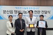 코리아타임뉴스 윤광희 기자 | 파주시 문산읍은 지난 10일, 14년간 지역 내 독거어르신 등 취약계층을 위해 꾸준한 나눔을 실천해 온 ‘센트럴제일안과’를 문산읍 행복나눔가게 15호점으로 지정하고 현판 및 감사패를 전달했다. 행복나눔가게 사업은 지역 내 사업체가 정기적인 기부를 통해 취약계층을 지원하는 문산읍의 민관 협력 나눔 사업이다. 이번 15호점 지정은 오랜 기간 이어진 각별한 인연과 순수한 나눔의 뜻이 더해져 지역사회에 큰 감동을 전하고 있다. 장기 후원의 배경에는 임동권 대표원장의 남다른 지역 사랑이 자리하고 있다. 임 원장은 과거 문산제일안과 원장으로 재직하며 2016년부터 2020년까지 문산읍 지역사회보장협의체 위원으로 활동했고, 지역 내 복지 사각지대 발굴에 앞장섰다. 현장에서 직접 마주한 독거어르신들의 어려운 현실을 깊이 이해한 그는, 운정으로 이전해 거리가 멀어졌음에도 후원을 멈추지 않았다. 임 원장은 2012년 6월부터 현재까지 14년간 매월 햄·참치 선물 꾸러미 등 식료품을 정기적으로 후원해 왔으며, 누적 후원 수량은 1만여 개에 달한다. 임동권 센트럴제일안과 대표원장은 “문산제일안과 시절