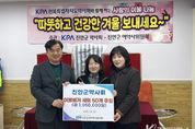 코리아타임뉴스 전북취재본부 | 전라북도여(女)약사회와 진안군 약사회는 저소득 가정의 따뜻한 겨울나기를 지원하기 위해 진안군사회복지협의회(회장 김 진)에 105만원 상당의 이불 베개세트 50개를 전달했다. 이번 따뜻한 나눔 행사는 전라북도여약사회에서 40만원을 지원하고, 진안군약사회가 65만원을 부담해 진행됐다. 김진 회장은 “수년째 저소득 가정을 위해 후원해 주시는 진안군약사회 여러분께 깊은 감사의 뜻을 전하며, 후원 해주신 뜻이 잘 전달되도록 최선을 다하겠다”고 밝혔다.