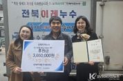 코리아타임뉴스 김태훈 기자 | 전주지역 종합설비 전문업체인 ‘전북이레누수’(대표 양인수)는 24일 전주시를 찾아 주거 취약 가구의 주거환경 개선을 위한 후원금 365만 원을 전달했다. 이번 후원은 지역사회로부터 받은 신뢰와 성원을 이웃에게 환원하겠다는 양인수 전북이레누수 대표의 철학에서 비롯된 것으로, 전북이레누수는 지난 2022년부터 올해까지 4년간 매년 365만 원씩 총1460만 원을 후원하며 따뜻한 나눔을 이어오고 있다. 특히 양 대표는 고물가 등 어려운 경영 여건 속에서도 ‘하루 1만 원씩, 1년 365일 나눔을 실천하자’라는 취지로 매일 정성을 모아 후원금을 마련해 의미를 더했다. 이날 전달된 후원금은 전주시 주거복지센터를 통해 주거 취약 가구의 생활 여건을 개선하는 데 사용될 예정이다. 무엇보다 전북이레누수의 행보는 단순한 금전적 기부에 그치지 않는다. 전문 누수탐사 및 종합 설비 기술을 보유한 이 업체는 전주시 재능봉사단인 ‘재봉틀(재능봉사)’ 사업에도 참여해 저소득 노인 가구를 대상으로 누수 탐지와 무료 시공 등 실질적인 재능기부 활동에도 적극 동참해왔다. 양인수 전북이