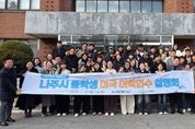 코리아타임뉴스 전남취재본부 | 전라남도 나주시가 겨울방학 미국 어학연수 참가자로 선발된 학생과 학부모 60여 명을 대상으로 지난 10일 동신대에서 2025 미국 어학연수 설명회를 개최했다고 밝혔다. 이날 설명회는 어학연수 영상 시청을 시작으로 어학연수 전반에 대한 설명과 준비 사항 안내, 전년도에 어학연수를 다녀왔던 선생님과 학생들이 경험한 홈스테이와 스쿨링의 유용한 정보 등을 공유하는 유익한 시간으로 진행됐다. 또 참가 학생들을 조별로 나누어서 모임을 하고 학부모를 대상으로 질의응답 시간을 가져 미국 연수 생활에 대한 궁금증을 해소하는 시간도 가졌다. 나주시가 지원하는 이번 미국 어학연수는 오는 23일부터 2월 8일까지 미국 메릴랜드주 세인트 빈센트 팔로티 고등학교에서 진행된다. 나주시 관내 중학교 2학년 학생 28명이 미국 학생 가정에서 홈스테이하면서 정규수업 참여하며 외국어 역량 강화와 문화 체험, 현지 적응력을 높여 글로벌 마인드를 함양하는 방식이다. 또 명문대학을 탐방하는 등 미국 문화를 현지에서 경험할 수 있는 일정으로 이루어져 있다. 설명회에 참석한 한 학부모는