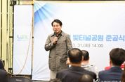 코리아타임뉴스 윤광희 기자 | 남양주시의회는 31일 와부읍 도곡리 산45-2번지 일원에 조성된 빛터널공원 준공식에 참석해 시민들과 함께 축하인사를 전했다. ‘빛터널공원 조성사업’은 경의중앙선 복선 전철화 개통 이후 장기간 방치된 덕소-도곡간 폐철도 구간을 주민 친화 공간으로 탈바꿈하기 위해 추진됐으며, 길이 250m, 면적 3,953㎡ 규모로, 정약용 스토리와 LED 미디어 파사드로 채워진 경관 빛터널과 커뮤니티 쉼터, 덕소리와 도곡리를 연결하는 인도교 등이 설치된다. 이날 행사는 조성대 남양주시의회 의장을 비롯해 시의원, 주광덕 시장, 국회의원·도의원, 와부읍 자치단체 회원 및 시민 등 100여 명이 참석한 가운데, △개회 및 인사말씀 △제막행사 △공원 라운딩 및 간담회 진행 순으로 진행됐다. 조성대 의장은 축사를 통해 “오랫동안 잠들어 있던 공간이 정약용 선생의 이야기가 담긴 역사 구간, 빛과 색이 어우러진 LED미디어 공간, 그리고 편히 앉아 쉬어갈 수 있는 커뮤니티 쉼터까지 이 모든 것이 하나로 어우러져 새로운 즐거움을 전해드리는 공간으로 다시 살아났다”고 말했다. 이어 “앞으로 아이들은 이