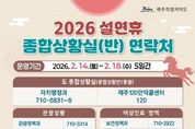 코리아타임뉴스 노승선 기자 | 제주특별자치도는 13일 진명기 행정부지사 주재로 ‘2026년 설연휴 종합대책 보고회’를 열고 ‘민생에 온기를, 안전에 안심을 더하는 설명절’을 주제로 분야별 세부 추진계획을 점검했다. 이날 보고회에는 정무부지사를 비롯해 안전건강실장, 특별자치행정국장, 행정시 부시장 등 상황반별 실국단장 20여 명을 포함한 130여명의 간부공무원이 참석했다. 제주도는 14일부터 18일까지 특별자치행정국장을 총괄로, 총 7개반 1,491명을 투입해 종합상황실을 운영한다. 도 7개반 366명, 제주시 7개반 625명, 서귀포시 9개반 500명이 참여하며, 하루 평균 298명이 현장에서 비상근무를 선다. 제주 120 만덕콜센터와 당직 근무자가 도민과 관광객 불편신고를 접수한다. 지난 10일 수립해 추진 중인 설연휴 종합대책은 ▲민생경제 안정 ▲도민안전 확보 ▲교통․관광 편의 ▲도민불편 해소 ▲나눔실천 등 5개 분야로 구성됐다. 물가안정 및 소비촉진을 위해 탐나는전 적립률 상향과 전통시장 온누리상품권 환급행사 등 소비지원 대책을 추진한다. 탐나는전 적립률을 2월 한 달간 20%로