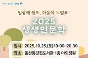 코리아타임뉴스 울산취재본부 | 울산 중구에서 운영하는 울산종갓집도서관이 오는 10월 25일 오후 7시 울산종갓집도서관 1층 야외정원에서 지역 주민과 함께하는 2025년 생생인문학 행사를 개최한다. 2025년 생생인문학 행사는 ‘일상에 쉼표, 마음에 느낌표’라는 주제로, 기존의 명사 초청 특강 형식에서 벗어나 동화 구연과 클래식 공연을 결합한 특별한 문화 프로그램 형태로 진행된다. 이번 행사에서는 『완벽한 아이 팔아요』, 『마음여행』, 『파닥파닥 해바라기』, 『오늘상회』,『작은 빛 하나가』 등 따뜻한 울림을 담은 다양한 그림책이 소개된다. 이와 함께 영화 삽입곡으로 잘 알려진 'Moon river', 'A whole new world'와 프랑스 대중가요 'Je te veux' 등 그림책의 내용과 어울리는 아름다운 피아노·바이올린·첼로 연주가 풍성하게 펼쳐진다. 이번 행사에는 지역 주민 누구나 참여 가능하다. 참여를 희망하는 주민은 울산 중구 통합도서관 누리집을 통해 신청하면 된다. 울산종갓집도서관 관계자는 “이번 행사가 아이들에게는 꿈과 상상력을 키우고 어른들에게는 동심을 떠