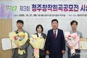 코리아타임뉴스 충북취재본부 | 청주시가 후원하고 (사)청주연극협회가 주최‧주관한 제3회 청주 창작희곡 공모전 시상식이 21일 임시청사 직지실에서 개최됐다. 이번 공모전은 한국 연극계의 새로운 목소리를 발굴하고 창작희곡의 활성화를 도모하기 위해 마련됐으며, 전국에서 다양한 소재와 형식을 담은 77편의 작품이 출품되는 등 뜨거운 관심을 모았다. 심사는 연출가, 극작가 등 연극 전문인으로 구성된 심사위원단이 맡아 작품의 완성도, 독창성, 실연성의 3개 항목에 대한 심사를 진행해 최종 3개의 작품을 선정했다. 최종 선정된 작품은 독창성이 높고 무대화의 가능성이 높다고 평가된 작품으로 대상(상금 1,500만원)은 이홍이 작가의 ‘모스크바의 바다’, 최우수상(상금 1,000만원)은 노동훈 작가의 ‘고민수의 변수 통제 시뮬레이션’, 우수상(상금 500만원)은 서준교 작가의 ‘다이치’에 영광이 돌아갔다. 수상작들은 저작권 계약을 맺고 청주 극단에 공연 제작 우선권을 지원하게 된다. 상을 수여한 이범석 청주시장은 “창작희곡은 한국 연극의 뿌리를 지탱하는 중요한 장르로, 이번 공모전을 통해 참신한 극작가