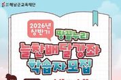 코리아타임뉴스 노승선 기자 | 해남군교육재단은 군민 평생학습 환경 조성을 위해 상반기 땅끝누리 늘찬배달강좌 학습자를 모집한다. 상반기 땅끝누리 늘찬배달강좌는 3월 3일부터 6월 19일까지 총 16주간 운영되며, 기간 중 총 13회 강좌로 구성된다. 운영 대상은 원칙적으로 10인 이상으로 구성된 학습팀이며, 악기를 활용한 강좌에 한해 7인 이상으로 구성된 학습팀도 신청 가능하도록 운영 기준을 적용한다. 모집 규모는 총 135팀 내외다. 특히 올해 상반기에는 기존 ‘1인 1강좌 신청’에서 동일한 학습팀원이 구성되는 조건하에 1인당 최대 2개 강좌까지 신청할 수 있도록 신청 기준을 완화하여 운영한다. 이를 통해 학습 선택의 폭을 넓히고 지속적인 학습 참여를 유도할 계획이다. 모집 기간은 1월 15일부터 1월 28일까지이며, 모집 분야는 ▲생활스포츠 ▲생활소양 ▲생활문화예술 ▲문화예술향상 등 군민의 다양한 학습 수요를 반영해 구성된다. 2015년부터 시작한 땅끝누리 늘찬배달강좌는 학습자가 자발적으로 구성한 학습팀을 대상으로 강사가 직접 찾아가는 생활밀착형 평생학습 프로