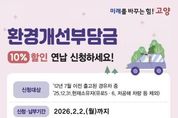 코리아타임뉴스 기동취재팀 | 고양특례시는 노후 경유차 소유자를 대상으로 한 ‘2026년도 환경개선부담금 연납 제도’를 운영하며 오는 2월 2일까지 신청받는다고 밝혔다. ‘환경개선부담금 연납 제도’는 노후 경유자동차의 소유자가 연 2회(3월·9월) 납부하는 환경개선부담금을 일시 납부하는 경우 부담금의 10%를 할인해 주는 제도다. 올해 환경개선부담금 연납의 산정기간은 작년 7월 1일부터 올해 6월 30일까지이며, 연납 후 폐차 말소, 주소이전 등 변동사유가 발생하더라도 보유기간만큼 일할계산돼 환급이 가능하다. 작년에 연납을 완료한 자동차 소유자는 별도의 신청 없이 올해도 연납 고지서를 받을 수 있으며, 신규로 연납 신청을 할 경우 2월 2일까지 고양시청 기후에너지과 또는 고양시 민원콜센터를 통해 신청하면 된다. 다만 연납 신청 후 기간 내 납부하지 않을 시, 연납 신청이 자동 취소돼 10% 할인 혜택을 받을 수 없으며 3월과 9월에 정기분 세액을 납부해야 한다. 납부 방법은 은행 CD/ATM(현금·신용카드), 위택스, 인터넷 지로, 가상계좌 이체 등이 있어 편리한 방법으로 납부하면 된다.