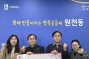 코리아타임뉴스 사회팀 | 지난 17일 경기중앙지방법무사회 수원지부는 원천동 저소득 지역주민들을 돕기 위해 성금 100만 원을 원천동행정복지센터(동장 김선혁)에 후원했다. 이번에 전달된 성금은 경제적 어려움을 겪고 있는 원천동 저소득 지역주민들을 위해 사용될 예정으로, 지역사회 나눔 문화 확산에 기여할 것으로 기대된다. 경기중앙지방법무사회 수원지부 관계자는 “작은 정성이지만 지역 내 어려운 이웃들에게 도움이 되길 바란다”며 “앞으로도 지역사회와 함께하는 다양한 나눔 활동을 지속해 나가겠다”고 밝혔다. 김선혁 원천동장은 “어려운 이웃을 위한 따뜻한 나눔에 깊이 감사드린다”며 “후원금은 도움이 꼭 필요한 저소득 주민들을 위해 소중히 사용하겠다”고 전했다. 한편, 경기중앙지방법무사회 수원지부는 매년 꾸준히 성금을 전달하여 지역사회 복지 증진을 위해 힘쓰고 있다.