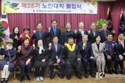 코리아타임뉴스 사회팀 | 지난 11월 13일, 대한노인회 수원시장안구지회 부설 노인대학 제25기 졸업식이 장안구지회 3층 대회의실에서 열렸다. 이번 행사는 (사)대한노인회 수원시장안구지회 주관으로 제25기 졸업생 58명과 지회 임원 20여 명을 포함해 총 80여 명이 참석했으며, 졸업장 수여 및 모범졸업생 시상 등의 식순으로 진행됐다. 수원시 장안구지회 노인대학은 어르신들의 평생학습과 사회참여 확대를 위해 다양한 교양 및 여가 프로그램을 운영하고 있으며, 올 한 해에도 지역 어르신들의 활발한 참여로 큰 호응을 얻었다. 이일희 장안구청장은 이날 행사에 참석해 졸업생들을 격려하며 “노인대학을 통해 배우는 즐거움을 이어오신 졸업생 여러분께 진심으로 축하와 존경을 전한다”며 “앞으로도 어르신들의 지혜와 열정이 지역사회의 큰 힘이 되길 바란다”고 전했다.