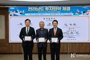 코리아타임뉴스 전남취재본부 | 영암군에 534억원 투자, 140명 고용 규모의 2개 수산식품 기업이 들어선다. 24일 전라남도청에서 전라남도와 영암군이, ㈜해진수산, ㈜해진식품과 투자협약을 체결하고 협력을 약속했다. 이날 협약에 따라 ㈜해진수산은 332억원을 투자해 영암군 삼호읍에 마른김 생산시설을 조성하고, 80여 명을 고용할 예정이다. ㈜해진식품도 같은 지역에 202억원을 투자해 조미김 생산시설을 구축하고 60여 명의 일자리를 창출할 계획이다. 영암군은 인·허가 신속 처리, 기반시설 확충 등 행정 지원으로 이번 협약을 뒷받침하고, 지역·기업 상생모델로 지역경제 활성화를 견인한다는 방침이다. 이날 투자협약에는 두 기업의 임한택 대표, 김영록 전라남도지사, 윤재광 영암군부군수 등이 함께 했다.