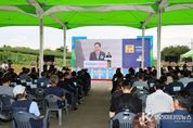 코리아타임뉴스 박찬식 기자 | 포항시가 경북도, 포스텍과 공동으로 24일 지곡동 나노융합기술원 일원 건축 예정 부지에서 첨단제조혁신 테스트베드센터 착공식을 개최했다. 이날 행사는 이강덕 포항시장을 비롯한 김학홍 경상북도 행정부지사, 김일만 포항시의회 의장, 경상북도의회 이칠구 의원, 서석영 의원, 김성근 포스텍 총장, 안수진 삼성전자 부사장 및 R·D 기관장 등 100여 명이 참석한 가운데 진행됐다. 센터는 총사업비 487억 원을 투입해 연면적 1만 5,000㎡, 지하 1층·지상 6층 규모로 조성된다. 내부에는 ▲차세대 반도체 소재 개발을 위한 클린룸, 설비동과 연구동, 첨단기술기업 입주공간 등을 갖추게 되며, 2027년 초 준공을 목표로 하고 있다. 특히 센터는 기존 실리콘 기반 반도체의 한계를 극복할 와이드밴드갭(WBG) 전력반도체 소재 개발 거점으로 주목받고 있다. 이 기술은 AI 데이터센터의 전력 효율 향상과 자율주행차 반도체 전력 관리 등 미래 산업의 핵심으로 꼽히며, 2030년에는 글로벌 시장 규모가 14조 원에 이를 것으로 전망된다. 포항시는 이번 센터 설립으