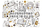 코리아타임뉴스 노승선 기자 | 화순군은 화순군립최상준미술관(화순읍 동구리에 위치)에서 2026년 미술 교육 프로그램을 함께 운영할 전문 강사를 1월 9일부터 1월 16일까지 모집한다고 밝혔다. 이번 강사 모집은 성인 대상 미술 교육 프로그램인 ‘미술교실’과 어린이 대상 프로그램인 ‘동구리 어린이 미술학교’ 운영을 위한 것으로, 미술을 통해 지역 주민과 어린이의 창의성과 예술적 감수성을 키워줄 역량 있는 강사를 선발할 계획이다. 성인 교육 프로그램인 ‘미술교실’은 유화반과 수채화반으로 운영된다. 유화반은 2개 반(초급반, 중급반)으로 각 3차시(차시별 13회차)로 구성되어 기초부터 심화 과정까지 단계별 수업을 통해 수강생들이 다양한 표현 기법을 익히고 자신만의 작품 세계를 구축할 수 있도록 지도하는 프로그램이다. 수채화 반은 2개 반(초급, 중급)으로 각 2차시(차시별 22회차)로 운영되며, 물과 색의 특성을 활용한 자유로운 표현을 통해 창작의 즐거움과 미술적 감각을 키우는 데 중점을 둔다. 해당 강사는 수강생의 수준과 개성을 고려한 맞춤형 수업을 기획 운영하며 예술적 표현력 향상을 이끄는 역할을 하게 된다. &