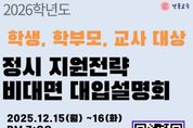 코리아타임뉴스 사회팀 | 경북교육청은 15일과 16일 양일간, 2026학년도 정시모집 지원을 대비하기 위해 ‘2026학년도 정시 지원전략 비대면 대입 설명회’를 운영한다고 밝혔다. 이번 설명회는 2026학년도 정시모집을 준비하는 학생과 학부모․교사에게 대학수학능력시험 분석 자료와 수도권·지역거점대학 등의 정시모집 정보를 제공해 지원전략 수립을 돕기 위해 마련됐다. 특히, 진학지도가 필요한 교사뿐 아니라, 실제 지원을 해야 하는 학생과 학부모님들에게도 기회를 제공하여, 불수능의 영향으로 혼란을 겪고 있을 경북 지역 학생과 학부모 모두에게 유익한 정보를 제공할 수 있을 것으로 기대된다. 양일간 진행되는 설명회는, 15일 19시에는 ‘2026학년도 대학수학능력시험 실시 결과와 수도권 15개 대학 정시모집 지원전략’을, 16일 19시에는 ‘수도권 대학, 지역거점국립대 및 지역 대학 정시 지원전략’을 주제로 운영되며, 참가자는 관심 분야에 맞는 설명회를 사전 선택해서 참여할 수 있다. 설명회는 ZOOM을 활용한 온라인 방식으로 진행되며, 참가 신청은 경북진학지원센터 누리집을 통해 가능하다. 김기