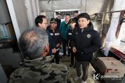 코리아타임뉴스 이아름 기자 | 김진태 강원특별자치도지사는 1월 13일 밤부터 도내 한파주의보가 발효될 전망에 따라 춘천시 신동면에 위치한 비주택 주거지를 방문해 주거환경 취약계층의 겨울철 안전대책을 점검했다. 도내 주거환경 취약계층은 총 57가구로 대부분 주거용 비닐하우스와 임시 컨테이너 등 비주택 시설에서 생활하고 있으며, 도는 한파에 대비해 해당 가구를 대상으로 이불, 담요, 핫팩 등 방한용품 6종을 긴급 지원하며, 난방 여건 개선과 안전 확보에 나섰다. 이날 김진태 지사는 겨울철 폭설로 인한 주거용 비닐하우스 붕괴 위험 여부를 점검하고, 거주지 내 난방기기와 소화기 작동상태 등 화재 예방을 위한 안전 점검을 실시했다. - 또한, 한파로 인한 생활 불편 사항과 추가 지원이 필요한 부분은 없는지 현장의 목소리를 직접 살폈으며, 건강관리 상황과 겨울철 한랭질환자 발생 시 즉각 대응할 수 있는 상시 대응 체계 현황도 함께 확인했다. 김 지사는 “지난 주말부터 매서운 추위가 이어지면서 걱정되는 마음에 찾아 왔다”며, “도에서도 도민의 안전과 보호를 최우선에 두고 한파로 인한 피해가 발생하지 않도록 사