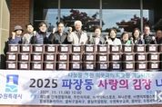 코리아타임뉴스 사회팀 | 수원시 장안구 파장동 새마을부녀회는 11일, 지역 주민들과 함께 ‘사랑의 김장 나누기’ 행사를 열고 따뜻한 정을 나눴다. 이번 행사에서 새마을부녀회는 직접 김장을 하고 정성껏 포장해 기초생활수급자, 독거노인, 취약계층 250가구에 전달했다. 정성스럽게 준비된 김치는 겨울철 이웃들의 식탁에 온기를 더해줄 예정이다. 박용희 파장동 새마을부녀회장은 “김장은 단순한 음식 장만이 아닌 정성과 마음이 담긴 겨울 준비”라며 “이웃을 생각하며 함께 담근 김치가 어려운 분들께 따뜻한 위로가 되길 바란다”고 말했다. 장인영 파장동장은 “어려운 이웃을 위해 정성껏 김장을 준비해주신 새마을부녀회와 여러 단체 및 후원해 주신 분들께 감사드리며 파장동의 사랑과 정성이 잘 전달될 수 있도록 하겠다”고 전했다. 파장동은 매년 겨울을 앞두고 김장 나눔 행사를 통해 이웃 간의 온정을 나누고 있으며 올해도 지역 주민들의 자발적인 참여와 후원으로 더욱 풍성한 나눔의 장이 마련될 것으로 기대해 본다.