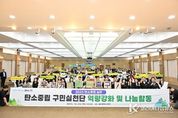 코리아타임뉴스 울산취재본부 | 울산 중구(구청장 김영길)가 10월 23일 오후 2시 30분 중구청 대회의실에서 ‘2050 탄소중립 구민실천단 역량 강화 및 나눔 활동’을 개최했다. 이번 행사는 탄소중립에 대한 공감대를 형성하고 주민 주도형 탄소중립 실천 문화를 확산하기 위해 마련됐다. 이날 행사에는 김영길 중구청장과 박경흠 중구의회 의장, 2050 탄소중립 구민실천단 단원 등 140여 명이 함께했다. 이번 행사는 △탄소중립포인트제 안내 및 홍보 △축하 공연 △탄소중립 실천 다짐 발표 △전문가 특강 △플라스틱 용기 없는 친환경 샴푸(샴푸바) 만들기 체험 순으로 진행됐다. 이날 신규 단원인 성신고 학생 및 교사 40명은 일상에서 다양한 탄소중립 활동에 앞장서겠다는 다짐을 밝혔다. 이어서 전문가 특강 순서에는 최승룡 에넬엑스코리아 신사업본부장이 ‘탄소중립과 세계적 추세(글로벌 트렌드)’라는 주제로 전 세계의 기후 위기 대응 흐름과 탄소중립 실천의 중요성 등을 설명했다. 이와 함께 참석자들은 플라스틱 용기 없는 친환경 샴푸(샴푸바)를 만들며 환경보호 의지를 다지고, 직접 만든 친환