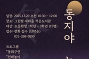 코리아타임뉴스 이아름 기자 | 수원시 장안구 정자3동 그린빌새마을문고는 동지를 맞아 오는 20일 전통문화 등 다양한 프로그램을 체험할 수 있는 ‘동지야 놀자’ 행사를 개최한다고 밝혔다. 이번 행사는 오는 20일 오전 10시 30분부터 12시까지 도서관에서 진행되며, △동화구연 △작은음악회 △전래놀이 △팥죽나눔 등 다양한 프로그램이 마련됐다. 박혜경 그린빌새마을문고회장은 “이번 행사를 통해 우리 고유의 세시풍속을 자연스럽게 익히고 따뜻한 겨울 정을 느낄 수 있길 바란다”며 “앞으로도 지역 주민과 함께하는 작은도서관이 될 수 있도록 노력하겠다”고 말했다.