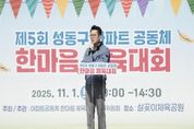 코리아타임뉴스 박찬식 기자 | 서울 성동구는 지난 11월 1일 살곶이체육공원에서 성동구 아파트 단지들이 한자리에 모여 ‘제5회 아파트공동체 한마음 체육대회’를 성황리에 개최했다. 올해로 5회째를 맞는 이번 체육대회는 성동구 아파트공동체 활성화단체 연합회(성아공 연합회)가 중심이 된 아파트공동체 한마음 체육대회 추진위원회 주관으로 진행됐으며, 성동구청과 각 아파트 공동체 활성화단체가 협력하여 원활한 행사 진행을 지원했다. 성동구가족센터, 옥수종합사회복지관 등 관내 복지시설에서는 다양한 체험부스 등을 운영했다. 체육대회는 관내 32개 아파트에서 약 650명의 입주민이 참여하여, 각기 다른 아파트 단지 주민들이 4개의 팀을 이뤄 협력과 경쟁을 즐기는 방식으로 진행됐다. 참가자들은 풍선 기둥 만들기, 한마음 공굴리기 등 가족과 이웃들이 함께 즐길 수 있는 스포츠 종목에 참여도 하고, 입주민 장기 자랑, 아이들을 위한 키즈존, 푸드트럭 등 다양한 볼거리, 먹을거리 등으로 즐거운 시간을 보냈다. 특히, 이번 체육대회는 단순히 스포츠를 즐기는 것을 넘어, 아파트 단지 내 주민들 간의 유대감을 깊게 만드는 기회가 됐다. 경기