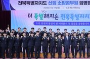 코리아타임뉴스 김태훈 기자 | 전북특별자치도는 19일 도청 4층 대회의실에서 2026년 신임 소방공무원 임명장 수여식을 열고, 도민의 생명과 안전을 지킬 신임 소방공무원 45명을 공식 임명했다. 이번에 임용된 신임 소방공무원 45명은 전원 구급대원으로, 증가하는 응급출동 수요와 고도화되는 구급서비스 환경에 대응하기 위한 현장 중심 전문인력으로 배치된다. 신임 구급대원들은 임명 이후 도내 각 소방관서에 배치돼 응급환자 이송, 현장 응급처치 같은 도민 생명 보호 임무를 최일선에서 수행한다. 이날 행사에는 신임 소방공무원 45명과 가족·친지를 비롯해 전북특별자치도지사, 전북특별자치도소방본부장 등 200여 명이 참석했다. 가족과 친지들이 함께한 가운데 진행된 수여식은 신임 구급대원들의 공직 첫 출발을 축하하는 자리로 마련돼 따뜻하고 편안한 분위기 속에서 진행됐다. 신임 구급대원들은 제111기 신규임용자 과정을 통해 중앙소방학교(충남 천안)에서 총 24주 동안 체계적인 교육과 훈련을 이수했다. 교육 과정에서는 구급 분야 중심의 응급처치 훈련을 비롯해 실화재·재난 대응 훈련, 행정실무 교육이 함께