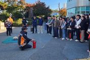 코리아타임뉴스 오영주 기자 | 남해군 농업기술센터는 지난 13일 농업기술센터 청사에서 남해소방서와 함께 화재 대응 소방훈련을 실시했다. 이번 훈련은 농업기술센터 1층 식당에서 화재 가 발생한 상황을 가정해 진행했으며, 자위소방대의 초동대처 및 소화, 구조구급 훈련이 이루어졌다. 훈련에는 농업기술센터 전 직원과 내방객 등 80여 명이 참여했고, 훈련 후에는 남해소방서 삼동11 9안전센터에서 화재예방 소방 교육이 실시됐다. 민성식 농업기술센터 소장은 강평에서 “농업기술센터는 평소에도 많은 농업인과 주민이 방문하는 공공시설인 만큼, 직원 모두가 재난 예방에 대한 경각심을 가지고 안전관리 체계를 유지해 달라”고 당부했다.
