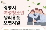 코리아타임뉴스 경기취재본부 | 광명시가 4일부터 청소년의 건강권과 인권 보장을 위해 ‘여성청소년 생리용품 보편지원 사업’ 신청을 받는다. 지원 대상은 광명시에 주민등록을 둔 11세부터 18세까지(2008. 1. 1.~2015. 12. 31. 출생) 여성청소년이며, 등록외국인과 국내거소신고자도 포함한다. 지원금은 1인당 월 1만 4천 원, 연 최대 16만 8천 원으로, 오는 4월 20일부터 광명사랑화폐 생리용품 전용 모바일 카드로 지급할 예정이다. 지원금은 올해 12월 31일까지 사용할 수 있으며, 기한 내 사용하지 않은 금액은 소멸한다. 단, 2026년 1월 이후 전입자는 전입 시기에 따라 지원 금액이 달라질 수 있다. 생리용품은 광명시 내 씨유(CU), 지에스(GS)25, 세븐일레븐, 이마트24 등 지역화폐 가맹 편의점에서 구매할 수 있고, 배달특급 앱과 연계된 온라인 쇼핑몰에서도 이용 가능하다. 신청은 3월 5일부터 3월 31일까지 ‘경기민원24’에서 온라인으로 하거나, 3월 4일부터 11월 13일까지 주소지 관할 동 행정복지센터를 방문하면 된다. 예산 소진 시 조기 마감할 수 있다